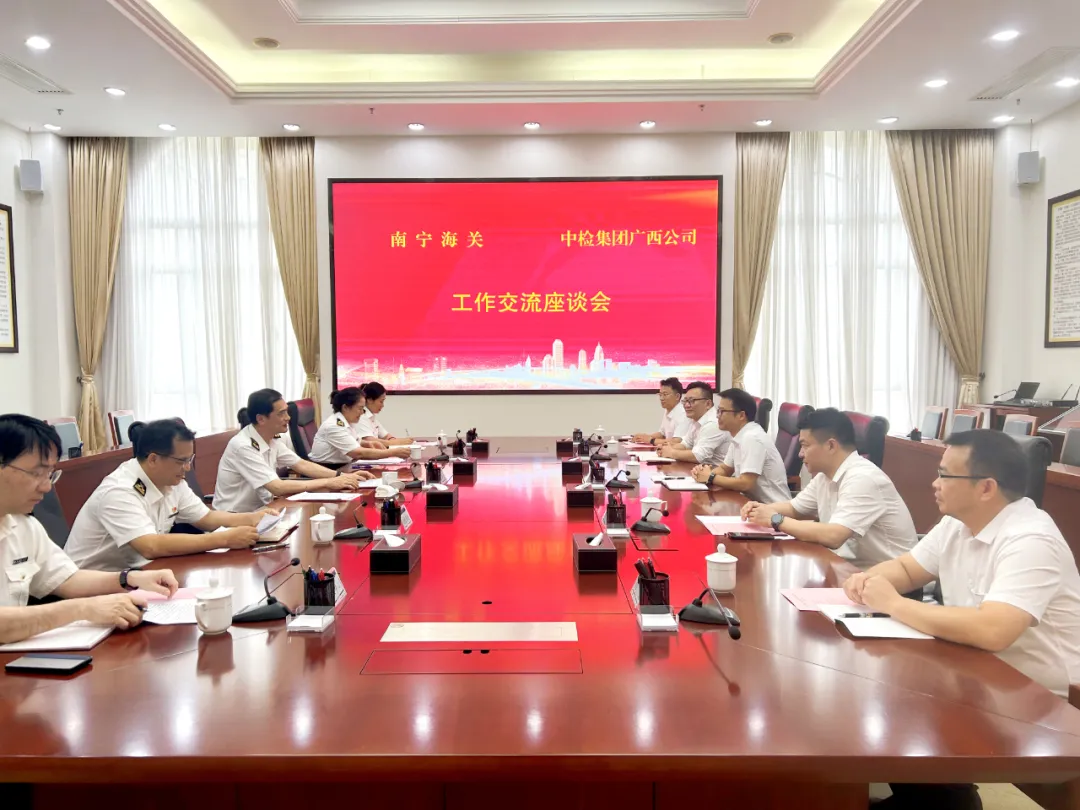 7月26日,中国中检广西公司(西南区域总部)副总经理江荆拜访南宁海关,与南宁海关副关长蓝华坚就进一步加深业务合作,共同提升广西各口岸贸易服务能力等方面进行了深入交流。