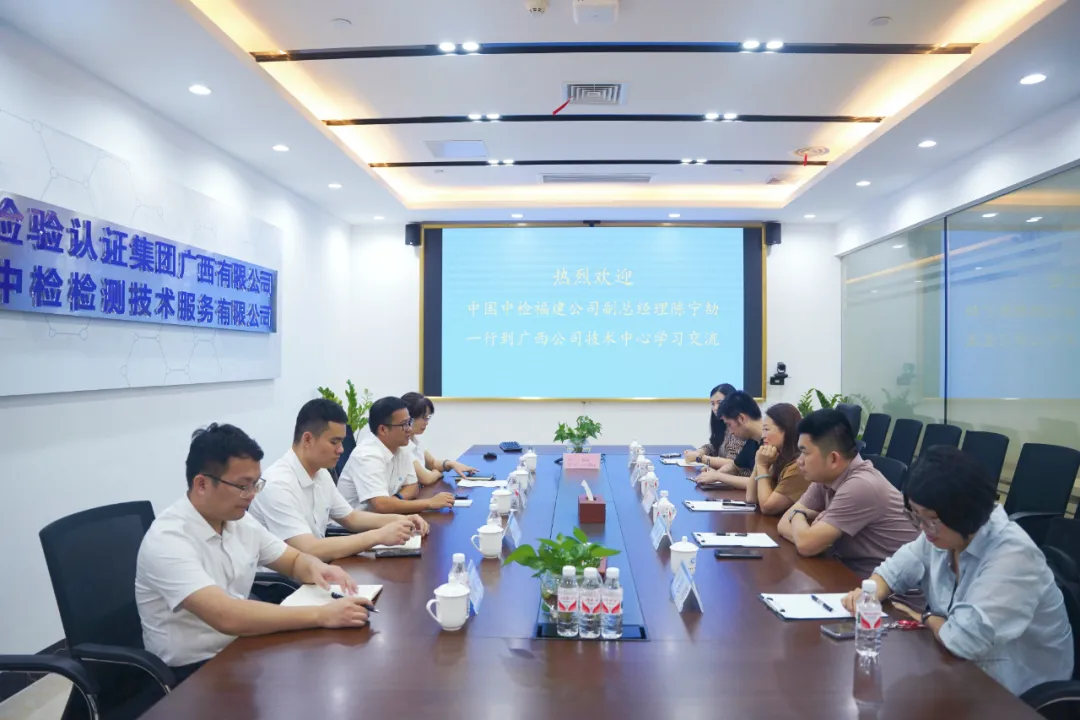 9月2-3日,中国中检福建公司副总经理陈宁劼一行到广西公司参观交流,广西公司副总经理江荆与陈宁劼就实验室运营与管理、科研创新工作等内容进行座谈。