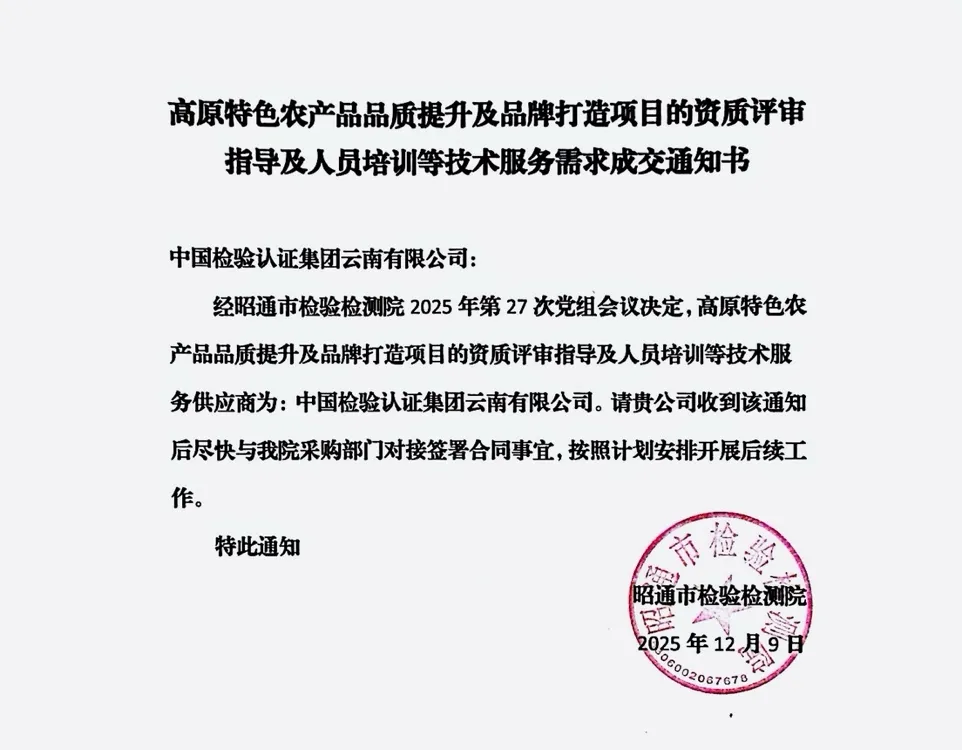近年来,云南公司持续关注区域产业发展需求,紧密跟踪高原特色农业提质增效相关动态,积极协同内外部技术资源,提前开展能力储备。在获悉该项目技术服务需求后,云南公司迅速组建专项服务团队,充分发挥在检验检测机构资质认定、质量管理体系构建、专业人员培训等方面的资源优势,深入调研昭通市检验检测院现状与发展目标,针对性制定系统性技术服务方案,最终在竞争中成功中标。