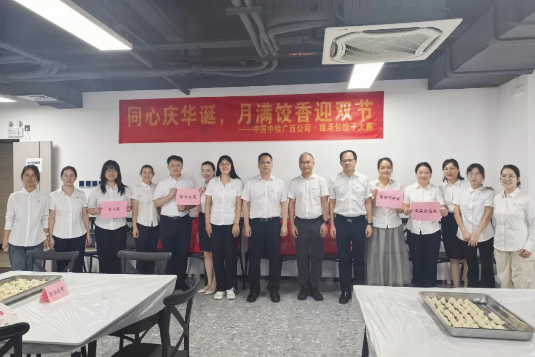 9月26日,在中秋、国庆双节来临之际,中国中检广西公司在南宁绿港办公区举办“同心庆华诞,月满饺香迎双节”职工包饺子大赛。广西公司党委书记、董事长、总经理王汉君参加活动并为获奖队伍颁奖。