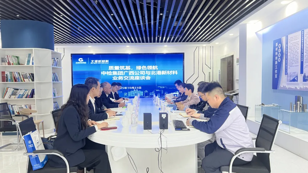 10月23日下午,中国中检西南区域公司党委委员、纪委书记陆军到访广西北港新材料有限公司(以下简称“北港新材料”),与北港新材料党委书记、董事长周卓莉座谈,双方围绕质量管控升级、绿色转型赋能等内容进行深入交流。