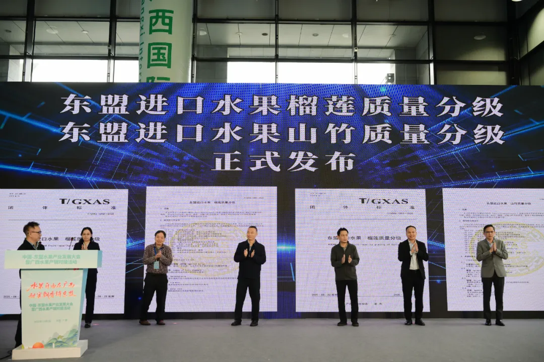 11月7日,中国—东盟水果产业发展大会暨广西水果产销对接活动在南宁开幕。活动期间,中国中检广西公司作为标准的起草单位之一受邀出席“东盟进口水果(榴莲、山竹)质量分级团体标准发布会”。