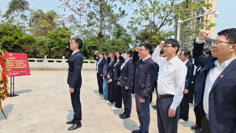活动最后,全体党员以重温入党誓词的形式接受思想洗礼。在陈文生的领誓下,党员们右手举拳、目光如炬,面向鲜红党旗庄严宣誓。铮铮誓言回荡在烈士陵园上空,这既是对革命先烈的深情告慰,也是对初心使命的庄重承诺。