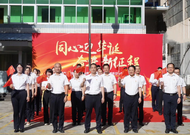 为庆祝中华人民共和国成立76周年,凝聚奋进新征程、建功新时代的磅礴力量,9月28日,中国中检西南区域公司举行“同心迎华诞·奋进新征程”升旗仪式,西南区域公司党委书记、董事长、总经理王汉君发表致辞,西南区域公司党委委员、纪委书记陆军主持仪式,西南区域公司党委委员、领导班子成员、主要部门负责人、党员代表参加仪式。
