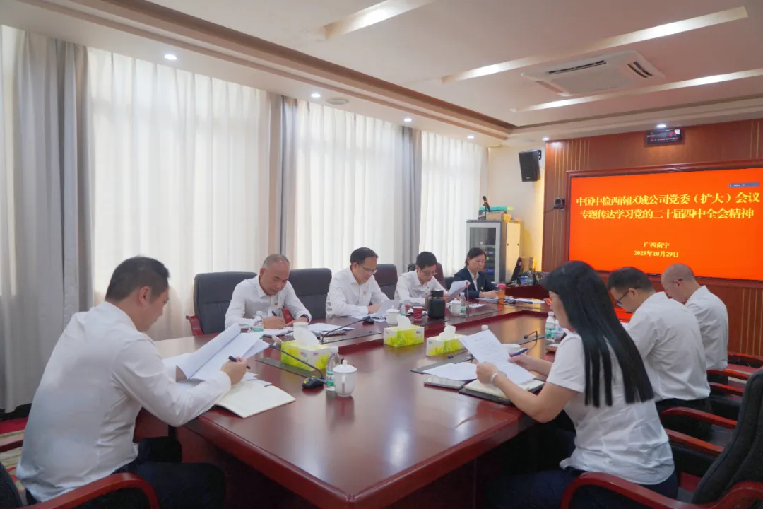 10月29日,中国中检西南区域公司召开党委(扩大)会议专题传达学习党的二十届四中全会精神,研究部署贯彻落实举措。西南区域公司党委书记、董事长、总经理王汉君主持会议,西南区域公司党委委员、领导班子成员、主要部门负责人参加学习。
