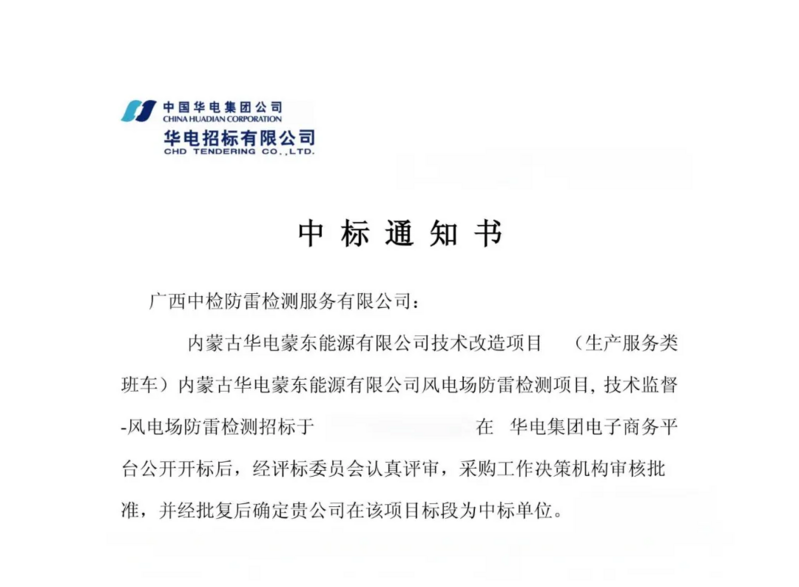 近日,广西中检防雷检测服务有限公司在中国质量认证中心有限公司沈阳分公司的协助下,成功中标内蒙古华电蒙东能源有限公司风电场防雷检测项目。