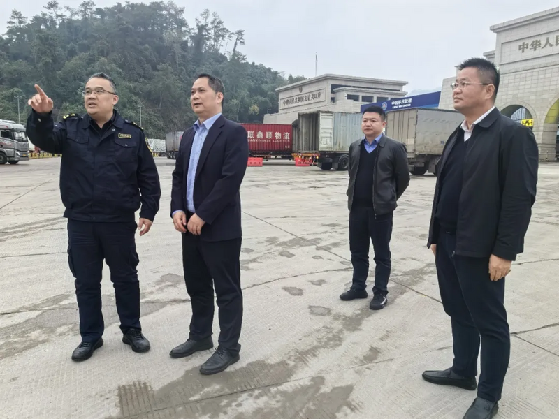 1月26日,中国中检西南区域公司党委书记、董事长、总经理王汉君到凭祥调研,拜访凭祥海关、友谊关海关,并到凭祥实验室、友谊关口岸查验平台及友在友谊关口岸货运专用通道零公里处实地调研。