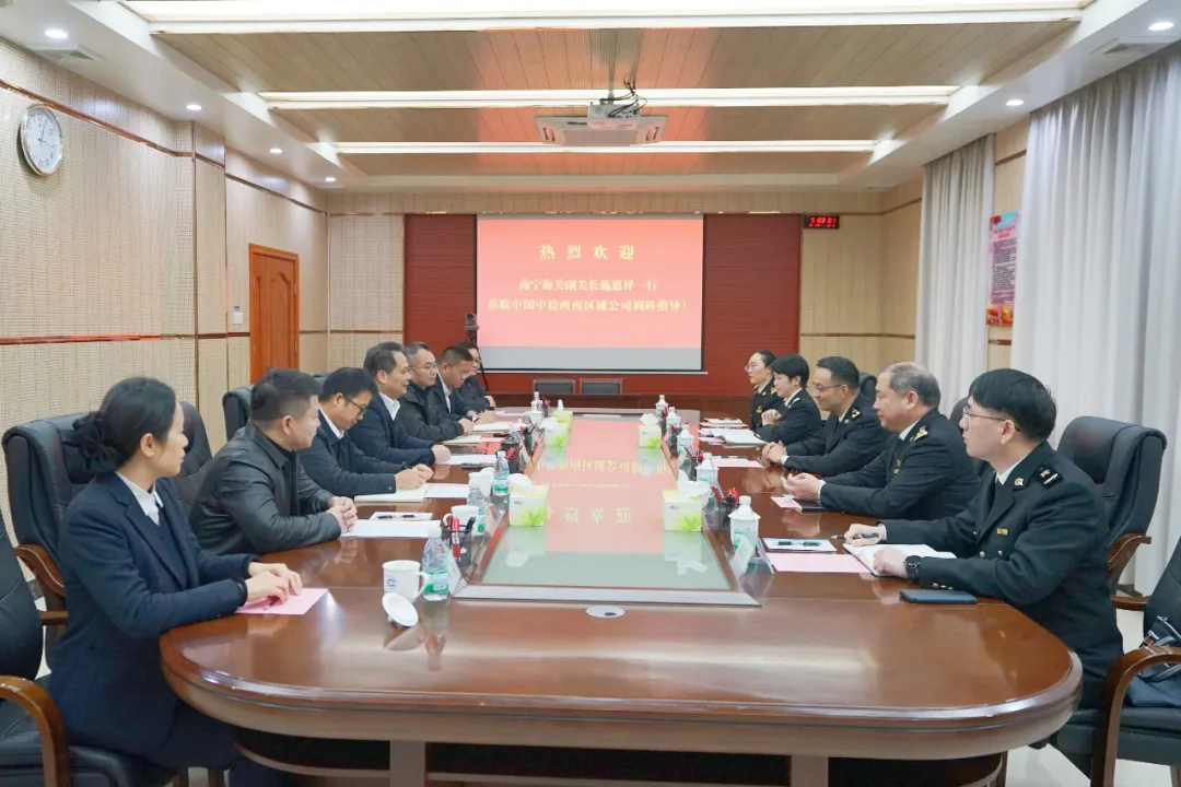 施惠祥对西南区域公司在服务口岸通关、助力海关监管方面发挥的专业作用予以肯定。他表示,面对新发展阶段的要求,海关正持续深化改革、强化科技赋能。希望双方在前期良好合作的基础上,进一步加强创新领域的技术协作,助力海关构建更高效、更智能的口岸监管服务体系,提升跨境贸易便利化水平,助推广西打造国内国际双循环重要节点枢纽。
