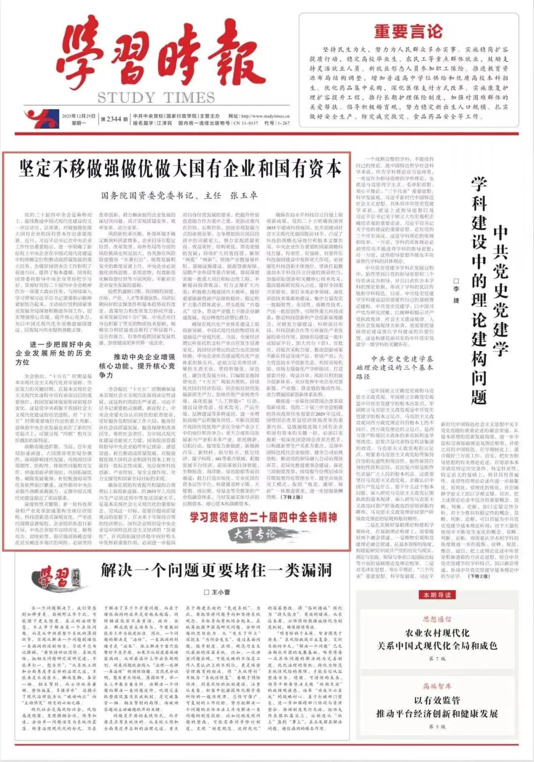 12月29日,《学习时报》刊发国务院国资委党委书记、主任张玉卓署名文章《坚定不移做强做优做大国有企业和国有资本》。全文如下。